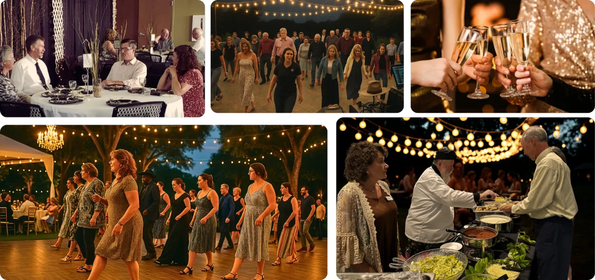We start every evening with a fun line dance lesson where EVERYONE participates.